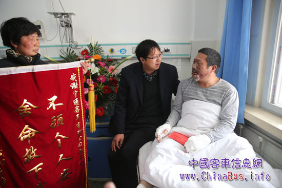 昨天上午,受宇通集團(tuán)黨委書記、總裁湯玉祥的委托,宇通公司代表專程給他送去2萬(wàn)元慰問(wèn)金,并承諾公司承擔(dān)其全部后續(xù)治療費(fèi),“弘揚(yáng)正氣,傳遞正能量,不能讓英雄流血又流淚”。