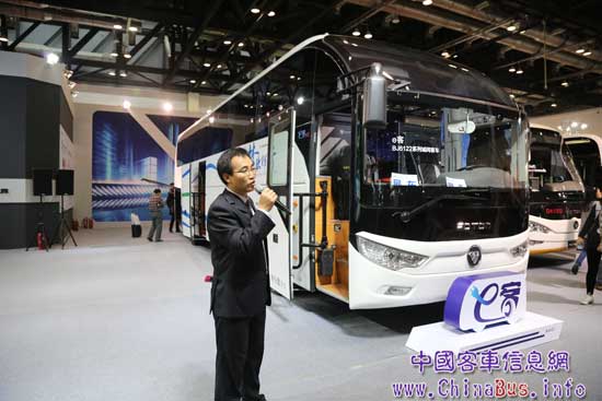 福田歐輝客車品牌總監(jiān)劉永會先生對e客進(jìn)行品牌介紹