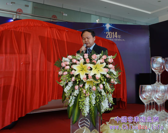 發(fā)布會(huì)現(xiàn)場金旅國內(nèi)銷售總監(jiān)兼銷售公司總經(jīng)理賴志藝致詞