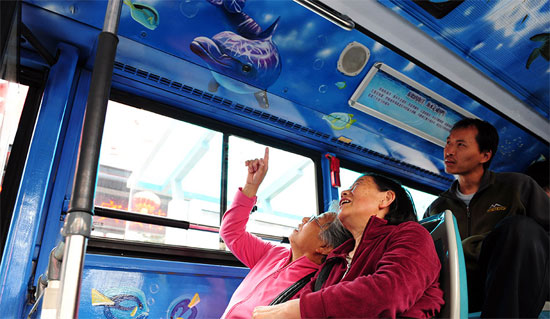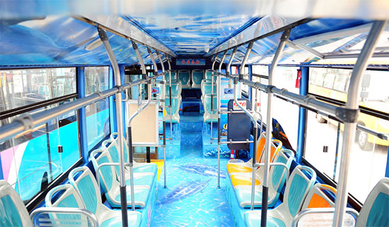 “你看,車身上居然有條大鯨魚!2015年5月28日,山東省首輛以海洋為主題的交運溫馨巴士隧道3路3D手繪公交車在青島正式上路,乘客們紛紛拿出手機拍照。據(jù)了解,這輛“流動的海洋世界”將每天從膠州灣海底隧道穿行,串聯(lián)起青島的東西兩岸。