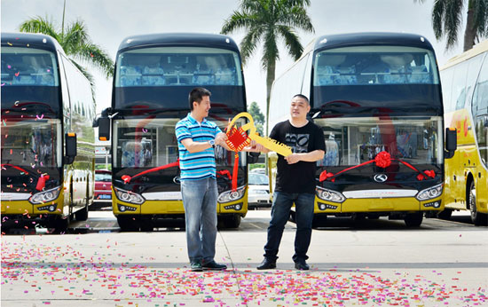 作為西部旅游大省,近年來(lái),“四川游”持續(xù)升溫。今年年初,四川省政府又提出了2015年旅游總收入突破5800億元的目標(biāo),全面提升旅游產(chǎn)業(yè)在GDP中所占的比重。順應(yīng)良好的市場(chǎng)環(huán)境,逸安旅游積極拓展周邊線路,以大金龍豪華客車服務(wù)游客,實(shí)現(xiàn)“雙贏”。一位前來(lái)提車的司機(jī)師傅說(shuō):“我們四川美著嘞,客人來(lái)四川玩,這里有好山、好水、好酒、好車!”