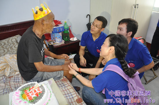 7月10日,是李明海老人的生日,志愿者提前為老人準(zhǔn)備了生日蛋糕,老人連聲贊道:“中,可甜!”