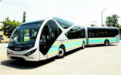 停在場站內(nèi)的新電車引來不少停站的公交車駕駛員和行人駐足觀看。新車既能掛上辮子,和電車一樣上路行駛,也能收起辮子,和普通汽車一樣上路!安唤柚娋,得看它的電池容量,如果設(shè)計安裝的電池數(shù)量多,最長可以跑一百多公里,一般情況下,只需要收起辮子跑十幾公里就行!睆S家的工作人員說。不過,由于車輛長度較長,公交集團(tuán)的工作人員正在開展路線勘察工作,確保18米大車能有效運行,不給道路添堵。此前,我市投入運行的18米公交車已在道路上運行了一段時間,從運行情況看,并沒有因為車輛太長而導(dǎo)致轉(zhuǎn)彎困難!皠e看這車有18米長,但它的轉(zhuǎn)彎半徑和普通10.5米的無軌電車一樣!惫ぷ魅藛T介紹說。