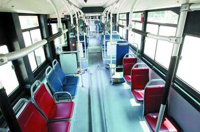 新車因為車身較長,車上設(shè)有4個車門,方便乘客下車!靶萝嚽伴T上車,二、三門下車,第四門為逃生門,且車門設(shè)有無障礙踏板,方便特殊乘客上下車!惫皇斜惫窘(jīng)理管恩軍介紹說,新車車內(nèi)設(shè)計及座椅與現(xiàn)有公交車大致相同,設(shè)有36個座位,載客量為167人。但新車最后一排只有三個座位,中間有金屬制的梯子通向車頂,便于車輛檢修,而目前的公交車最后一排則全為車座。最為引人注意的是,這輛車全是皮質(zhì)座椅,提高了乘車的舒適性。此外,駕駛室配上了玻璃門,將駕駛員和其他乘客隔絕開來。管恩軍說,這一人性化的設(shè)計,既能讓駕駛員安心開車,保證行車安全,也能杜絕個別乘客的過激行為。