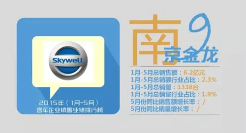 2015年1-5月客車(chē)企業(yè)銷(xiāo)售業(yè)績(jī)前十排行