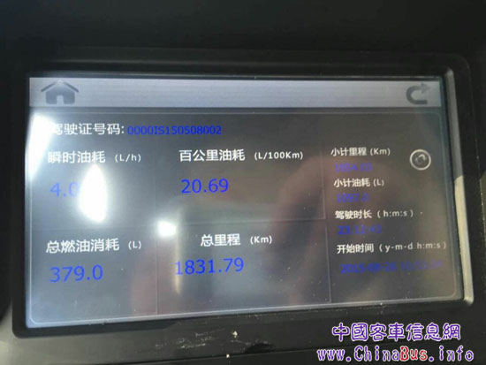 運行在哈爾濱的YBL6125H2QJ1雙風擋維特思達金剛高二級豪華客車,在連續(xù)運行1831公里后,“星云”系統(tǒng)實時統(tǒng)計,百公里油耗僅為20.69升。這一驚人的油耗數(shù)據(jù),低于行業(yè)平均水平20%。