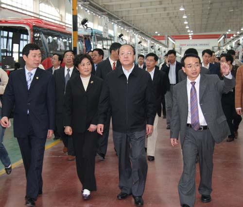 春天的江南,草木蔥綠,滿目生機。4月29日,中共中央委員、國家質(zhì)檢總局局長李長江在江蘇省、蘇州市有關(guān)領(lǐng)導(dǎo)的陪同下,來到位于蘇州工業(yè)園區(qū)的蘇州金龍客車公司調(diào)研考察。蘇州金龍總經(jīng)理吳文文向李長江局長一行匯報了公司技術(shù)創(chuàng)新、產(chǎn)品出口、品牌建設(shè)等方面的情況。李長江局長對蘇州金龍所取得的成績予以充分肯定。