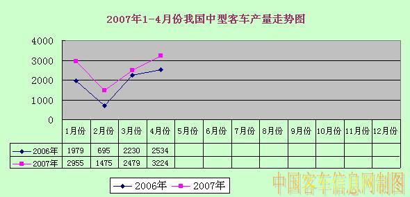 2007年1-4月份我國(guó)中型客車產(chǎn)量走勢(shì)圖