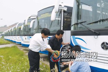 日前,由亞星—奔馳有限公司生產(chǎn)的25輛旅游車經(jīng)檢驗(yàn)合格后順利發(fā)往非洲的安哥拉。這是該公司成立以來接到的一份最大訂單。圖為市檢驗(yàn)檢疫人員對出口車輛進(jìn)行檢測。