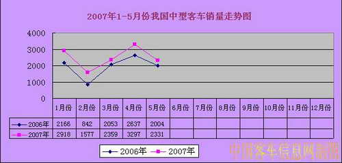 2007年1-5月份我國中型客車銷量走勢圖