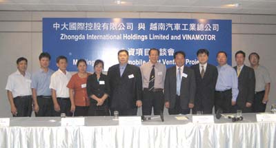 2007年8月6日下午,在香港太古廣場5樓會(huì)議廳,中大國際控股有限公司與越南汽車工業(yè)總公司就雙方合資合作的相關(guān)事宜廣泛交換了意見。中大國際控股有限公司董事局主席徐連國、董事局副主席張玉清及越南汽車工業(yè)總公司董事長阮文科等出席會(huì)議,并就合資合作的若干問題達(dá)成了一致意見。