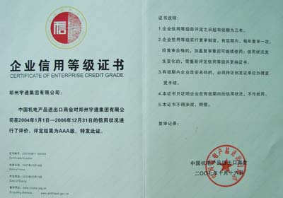 10月16日,由中國(guó)機(jī)電產(chǎn)品進(jìn)出口商會(huì)主辦的“中國(guó)機(jī)電進(jìn)出口行業(yè)企業(yè)信用等級(jí)評(píng)價(jià)結(jié)果發(fā)布會(huì)”在廣州舉行,鄭州宇通集團(tuán)有限公司被評(píng)選為中國(guó)機(jī)電進(jìn)出口企業(yè)信用評(píng)價(jià)AAA級(jí)企業(yè)。