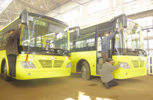 12月3日,哈爾濱龍江客車(chē)制造有限公司生產(chǎn)的首批“龍江”牌公交客車(chē)下線。該車(chē)大馬力多點(diǎn)電噴環(huán)保發(fā)動(dòng)機(jī)和專為寒帶設(shè)計(jì)的除霜和采暖系統(tǒng),保證冬季車(chē)廂內(nèi)溫度不低于15度。目前,他們已經(jīng)接到了200臺(tái)客車(chē)訂單。