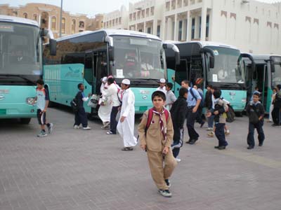 放學(xué)啦 卡塔爾一學(xué)校的學(xué)生高興乘座海格客車