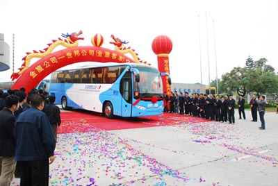 2007年12月17日上午,廈門金龍旅行車有限公司的海滄大客生產(chǎn)基地門前熱鬧非凡, “金旅公司—世邦公司(金旅客車)交接車儀式” 在此舉行。出席此次交接車儀式的有嘉興市道路運輸協(xié)會秘書長兼浙江嘉興世邦商務旅游客運有限公司金佳鶴董事長、嘉興世邦公司吳貴連總經(jīng)理、嘉興世邦公司毛來法副總理和蔣金順副總經(jīng)理、杭州旅游集散中心長三角客運旅游公司王衛(wèi)國總經(jīng)理以及廈門金旅公司萬邵春副總經(jīng)理、金旅銷售公司張其建總經(jīng)理和陳篤廉副總經(jīng)理等領(lǐng)導和嘉賓。