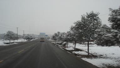 第二天,我們?cè)缭缇推饋?lái)到外面查看了天氣情況,雪仍然在下著,但值得慶幸的是路面沒(méi)有冰凍可以通行??赡苁巧咸鞂?duì)我們美的客車(chē)的特別關(guān)照吧,吃完熱騰騰的早餐后車(chē)隊(duì)開(kāi)始爬秦嶺。此時(shí)的秦嶺山上呈現(xiàn)的是白茫茫的景象,當(dāng)我們的車(chē)隊(duì)爬至半山腰時(shí),前面的車(chē)龍又讓我們嚇了一跳,塞車(chē)了,天冷不敢下車(chē)去打聽(tīng),也不知道發(fā)生了什么事情,只好關(guān)在車(chē)?yán)锫取T诎肷窖覀冏阕愕攘巳齻€(gè)小時(shí),事不湊巧,這時(shí)的雪又下得猛了,外面除了雪幾乎看不清什么了。這下給整蒙了,如果這樣下去,后果不堪設(shè)想,這會(huì)給駕駛員的身體和車(chē)隊(duì)的安全造成極大的不利。就在我們相互聯(lián)系擔(dān)憂的時(shí)候,警笛聲在我們的不遠(yuǎn)處響起了,前方的車(chē)輛好像在動(dòng)??赡苁乔胺降墓收弦呀?jīng)由交警排除,我們懸起來(lái)的心落了下來(lái),美的車(chē)隊(duì)又正常的開(kāi)始前行。終于翻過(guò)了秦嶺,在晚上12:00左右到達(dá)西安,雖然沒(méi)有下雪了,但氣溫還是比較冷,這一夜過(guò)得還可以,因?yàn)樾那椴诲e(cuò)。下一個(gè)目的地是蘭州,我們必須算好時(shí)間到達(dá)那里會(huì)合我們服務(wù)科的尤經(jīng)理,因?yàn)槲覀兊能?chē)隊(duì)計(jì)劃在服務(wù)站做底盤(pán)保養(yǎng)。蘭州我們是在下午四點(diǎn)到達(dá)的,一切都按原計(jì)劃進(jìn)行,車(chē)隊(duì)做完保養(yǎng)并檢查車(chē)輛后就地休息明天整裝向西寧進(jìn)發(fā)。