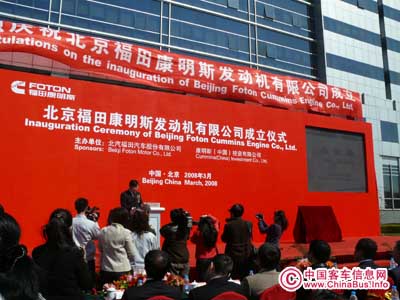 2008年3月26日,北汽福田汽車(chē)股份有限公司(簡(jiǎn)稱(chēng)福田汽車(chē))旗下的第一家中外合資企業(yè)——北京福田康明斯發(fā)動(dòng)機(jī)有限公司(簡(jiǎn)稱(chēng)BFCEC)正式成立,并在北京昌平的福田汽車(chē)總部舉行了隆重的成立儀式。這一發(fā)動(dòng)機(jī)合資公司建成以后年生產(chǎn)能力將達(dá)40萬(wàn)輛,是我國(guó)目前最大的發(fā)動(dòng)機(jī)生產(chǎn)企業(yè)。