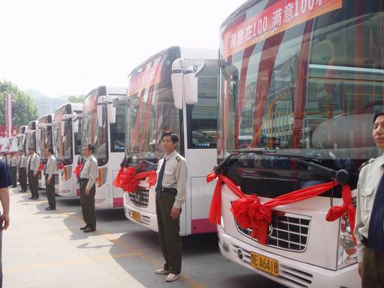 伴隨著宜昌市人民政府王宏強副市長鳴發(fā)的一聲響亮的發(fā)令槍,30臺全新的100路綠色環(huán)保公交客車整裝出發(fā)。它的第一批乘客是來自宜昌市委、市政府、夷陵區(qū)委、區(qū)政府、宜昌市交通局、財政局、國資委等政府部門和宜昌市直屬單位的領(lǐng)導和嘉賓。