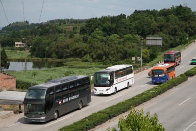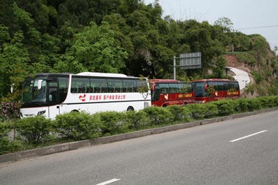 據(jù)了解,此次參加安凱客車西部巡展的車隊(duì)由尊榮400、HFF6125WK79(下沉式臥鋪)、HFF6890KZ-8三輛車組成。4月20日,他們從重慶出發(fā),一路北上,抵達(dá)陜南、穿越秦嶺。面對(duì)秦嶺山路多,彎道急、坡度陡的路況和連日陰雨的濕滑路面,安凱客車顯示了其卓越的操控性能和安全性能,三輛車魚(yú)貫上坡、下坡、進(jìn)洞、出洞,沒(méi)有一起險(xiǎn)情出現(xiàn)。其中,在崎嶇的山路上最值得一提的是車隊(duì)領(lǐng)頭羊尊榮400前端先進(jìn)的遠(yuǎn)紅外線夜視儀,在雨天云霧繚繞的山路上它適時(shí)監(jiān)控前方路況,為車隊(duì)順利穿行于崇山峻嶺之中提供了有力的技術(shù)保證。車隊(duì)順利穿過(guò)安康、漢中、寶雞,抵達(dá)西安。