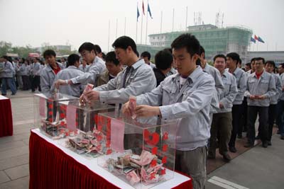 捐款現(xiàn)場,一位來自四川的福田員工說:“我是四川人,我家鄉(xiāng)的父老鄉(xiāng)親正在經(jīng)受著災難,我心中十分悲痛和憂心,但是看到溫家寶總理第一時間趕往了災區(qū),全國人民紛紛伸出了援助之手,我感覺我們中國人民眾志成城,一定能戰(zhàn)勝災難。今天大家為我的家鄉(xiāng)捐款,這個場面讓我感到很溫暖,我也為家鄉(xiāng)人民獻上了自己的一點心意?!?/P>