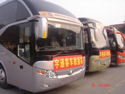 而宇通派駐在四川災(zāi)區(qū)工作的員工,也于14日上午,在宇通領(lǐng)導(dǎo)的指示下,在川渝大區(qū)經(jīng)理的主持下,迅速組成了一支“宇通救援隊”。這是一支由川渝大區(qū)經(jīng)理等業(yè)務(wù)人員、售后人員、司機以及3輛宇通客車組成的特殊愛心團隊。他們的旗幟熱烈而又包含深情——“心系國家,情牽災(zāi)區(qū)”,他們的成員有3輛宇通精品客車和多名經(jīng)驗豐富的宇通業(yè)務(wù)、服務(wù)人員及司機,他們的戰(zhàn)場是分秒必爭而又運力有限的災(zāi)區(qū)前線,他們的任務(wù)是接送救災(zāi)人員以及轉(zhuǎn)移災(zāi)區(qū)群眾,他們的身后是萬名宇通集團員工的重托和祝愿!