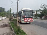 在向公司領(lǐng)導(dǎo)和同事們依依告別后,我們第二批“恒通賑災(zāi)救援服務(wù)小組”一行13人,護(hù)送著公司捐贈給災(zāi)區(qū)的4輛客車及賑災(zāi)物資向綿陽方向出發(fā),5月25日清晨我們將與中國紅十字基金會的朋友們匯合。