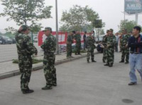 綿陽機(jī)場附近的帳篷區(qū)和等待命令的武警戰(zhàn)士