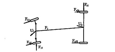 (4) 主銷后傾角過大。制動跑偏時的受力如圖1 所示: 由于主銷后傾角大, Fr1 對轉(zhuǎn)向輪產(chǎn)生的偏轉(zhuǎn)