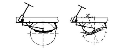 現(xiàn)在, 鋼板彈簧懸架在客車上的應(yīng)用仍很廣。通力矩會較大, 當(dāng)轉(zhuǎn)向輪受到外界影響時會引起振動;常的板簧懸架自身既是彈性元件又是導(dǎo)向元件, 因此, 在汽車板簧懸架設(shè)計中進行運動學(xué)的設(shè)計計算是不可忽視的。由于客車的前懸一般都較長, 這項工作在客車的設(shè)計中顯得更為重要。前板簧與轉(zhuǎn)向桿系的運動學(xué)關(guān)系不當(dāng)或兩個轉(zhuǎn)向輪的制動力不相等是導(dǎo)致前輪擺振和制動跑偏的主要原因之一(前輪定位和板簧懸架的剛度偏低也是造成前輪擺振和制動跑偏的原因)。這不但會導(dǎo)致客車在不平路面上轉(zhuǎn)向盤受到?jīng)_擊, 而且會破壞客車的轉(zhuǎn)向特性(干涉轉(zhuǎn)向)。在總布置設(shè)計時, 如果忽略板簧制動力矩引起的扭曲運動, 往往會引起制動時自動轉(zhuǎn)向(擺振), 車速高時甚至?xí)l(fā)客車甩尾, 造成交通事故。