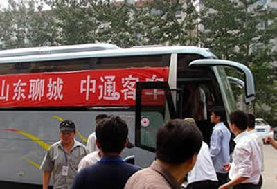 2008年5月17日上午兩輛載滿了中通客車全體員工深深祝福,滿載著災(zāi)區(qū)急需的食品和衣物的客車緩緩地駛出公司廠門口,浩浩蕩蕩的向?yàn)?zāi)區(qū)進(jìn)發(fā)。