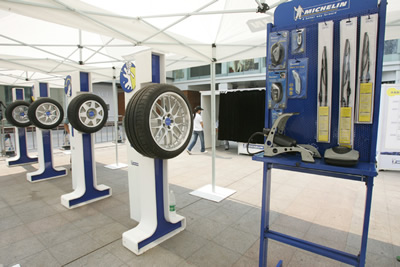 “2008米其林輪胎安全體驗(yàn)之旅”廣州站現(xiàn)場(chǎng)展示了米其林安全輪胎產(chǎn)品和米其林汽車裝備系列產(chǎn)品