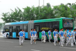 2008北京奧運(yùn)會在億萬國人的期盼中到來了,北京向全世界敞開了大門,據(jù)不完全統(tǒng)計(jì),截止8月7日 ,北京已迎來了205個國家和地區(qū)的代表團(tuán)和記者兩萬余人。為確保奧運(yùn)期間出行的方便、快捷,奧組委在全國范圍內(nèi)調(diào)集大批量客車入京服務(wù),中通純電動客車“萬里挑一”成為唯一能夠在鳥巢下運(yùn)行的車輛,已于5月19日上線運(yùn)行,在近3個月的運(yùn)行過程中,憑借穩(wěn)定的車輛性能和周到的服務(wù)得到奧組委的一致好評,據(jù)此,7月30日 ,奧組委向中通客車公司提出再增加兩輛客車的要求,此次增加的車輛為中通LCK6180BRT客車,該車長18米 ,寬2.54米 ,可容納175人,是中通客車引入歐系博發(fā)客車技術(shù),以節(jié)能降耗為核心理念設(shè)計(jì)的高技術(shù)、低能耗、低排放鉸鏈?zhǔn)娇蛙嚒?