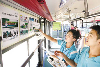 為更好地宣傳《公約》和《守則》,公交三公司在8路、646路等文明示范線路車廂內(nèi)張貼宣傳漫畫。