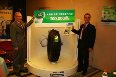 2008年8月26日,米其林中國投資有限公司在北京向其用戶交付了一條米其林綠色節(jié)能輪胎XZA2+ Energy,這也是米其林自2006年在中國市場上開始銷售卡客車綠色輪胎以來的第十萬條輪胎。米其林中國還宣布,為了滿足日益增長的市場需求,將在2008年進(jìn)一步豐富其節(jié)能輪胎的規(guī)格,提供適用于更多車型的配套產(chǎn)品。目前為止,米其林是中國卡客車輪胎市場上唯一能提供綠色節(jié)能輪胎的輪胎制造商。