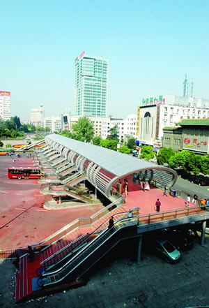 中鐵四局四公司施工的安徽省合肥市人民廣場公交換乘中心是合肥首座“無縫換乘”大型公交樞紐,設計四條 BRT公交站臺和四條普通公交站臺及停車區(qū),投入使用兩個多月來,可同時服務兩千名乘客,不僅解決了城市中心人流密集地區(qū)公交集中換乘難題,也成為合肥的一道靚麗風景,“人車分流”的設計,充分體現(xiàn)了以人為本的理念。