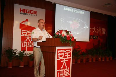 從5月30日開始至今,海格客車先后在貴陽、茂名、大連、北京、上海等城市舉行了11場“海格安全大講堂”。大講堂特邀中德安駕(北京奧運(yùn)會(huì)安全駕駛培訓(xùn)服務(wù)提供方)的專業(yè)講師,針對(duì)客運(yùn)行業(yè)制作專門的課件,通過安全知識(shí)講解,經(jīng)典案例分析,與來自各地的客運(yùn)、旅游運(yùn)輸公司董事長、總經(jīng)理、機(jī)務(wù)處長、安全處長、駕駛員代表等展開精彩熱烈討論,拉開了一個(gè)全行業(yè)關(guān)注安全的大幕。在奧運(yùn)會(huì)后的9月中旬,大講堂再次在上海開講,在業(yè)內(nèi)引起較大反響。