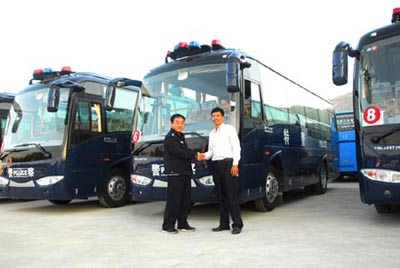 2008年8月8日奧運會在北京隆重開幕,作為足球比賽分會場,沈陽地區(qū)的交通、會場設(shè)施等各方面很早就進入了全面?zhèn)鋺?zhàn)的階段,而保障比賽的順利進行也成為了我們沈陽公安民警的一大神圣使命。7月8日遼寧省公安廳下發(fā)指示,要求我們朝陽市特警執(zhí)行奧運安保任務(wù),任務(wù)下達后,我局對工作進行全面部署,發(fā)現(xiàn)原有的車輛不符合特警出勤需要,計劃購買2臺特警防暴車。這時離奧運開幕只剩下不到一個月的時間,時間緊迫,我們咨詢了多家客車制造廠家并提出訂購要求。要求此車必須在20天內(nèi)交貨,并須按照特警機動性要求,設(shè)置中門,防暴專用等警用設(shè)施。很多客車廠家表示中型車輛無中門狀態(tài),需重新開發(fā)設(shè)計,車輛無法按時交付。廈門金旅駐點人員接到采購要求后,連夜趕到我局,并反復和公司溝通,在克服重新設(shè)計和時間等困難后,于7月28日,在保證車輛高質(zhì)量的前提下,如期把特警車交付給我們,使我們順利地完成了奧運的安保任務(wù)。第一次接觸,誠信讓我們結(jié)識了金旅人,同時也認識了金旅產(chǎn)品。