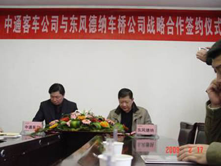 東風(fēng)德納楊總表示,中通客車這幾年的發(fā)展是飛速的,特別是08年的發(fā)展呈現(xiàn)了幾倍于行業(yè)發(fā)展速度的增長,在行業(yè)內(nèi)具有很強的影響力。東風(fēng)德納作為一家汽車車橋供應(yīng)商,希望能借助于中通客車這個平臺共同開展市場調(diào)研,共同走訪和了解終端客戶的真實需求,為了開發(fā)出更加適用于客車和適應(yīng)市場的新產(chǎn)品而提供真實的產(chǎn)品信息。