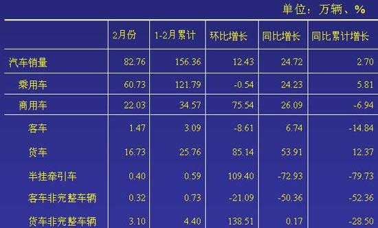 從前2月銷量數(shù)據(jù)看,乘用車明顯好于商用車,乘用車產(chǎn)銷均正增長(zhǎng),而商用車則明顯下降。