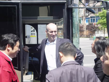 5月6日上午,阿文美馳汽車工業(yè)公司亞太區(qū)總裁提姆•博威斯、中韓地區(qū)總裁杰森•愛普特一行4人來安凱考察訪問。安凱股份公司董事長王江安、副總經(jīng)理熊良平、總經(jīng)理助理董剛陪同考察。