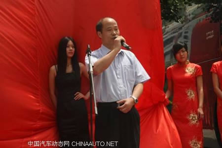 廈門金龍旅行車有限公司銷售公司總經(jīng)理李鵬為新車揭幕儀式致辭