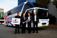 Handing over of the Teambus NEOPLAN Starliner for German soccer team FC Hansa Rostock in the plant in Pilsting (from the left:) Ralf Gawlack (Board member for Marketing Hansa Rostock), Hans Joachim Pilz (Member of the managing board MAN Truck & Bus Deutschland GmbH), Herbert Maronn (Member of the board for licence players Hansa Rostock), Mike Vannauer (Sales member MAN Truck & Bus Deutschland GmbH).