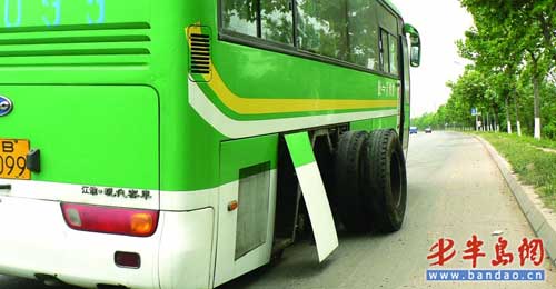 “大客車跑著跑著,車后輪竟然掉下來(lái)了?!?月5日上午11時(shí)許,一輛膠州到青島的大客車沿著204國(guó)道行駛到城陽(yáng)區(qū)棘洪灘街道南萬(wàn)社區(qū)附近時(shí),車右后輪突然脫離車體沿路飛奔出去,而大客車則側(cè)歪在了路邊,致使10余名乘客受到驚嚇。事后,乘客們紛紛從車內(nèi)逃出,被安排到另外一輛客車上前往青島。所幸當(dāng)時(shí)車速不快,并沒造成人員受傷。