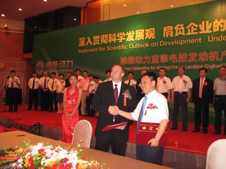 7月9日,第一個(gè)開發(fā)出擁有完全自主知識(shí)產(chǎn)權(quán)國(guó)Ⅲ發(fā)動(dòng)機(jī)的濰柴動(dòng)力,在北京舉行藍(lán)擎電控國(guó)Ⅲ發(fā)動(dòng)機(jī)產(chǎn)銷12萬臺(tái)主題慶?;顒?dòng),并與國(guó)際著名的高壓共軌系統(tǒng)供應(yīng)商——德國(guó)博世公司在北京簽署協(xié)議,雙方將在前期緊密合作的基礎(chǔ)上,建立更加穩(wěn)固的長(zhǎng)期戰(zhàn)略合作關(guān)系,此舉將進(jìn)一步促進(jìn)雙方合作的縱深發(fā)展,大大提升雙方在各自領(lǐng)域的競(jìng)爭(zhēng)力。與濰柴同時(shí)簽署協(xié)議的,還有著名汽車零部件供應(yīng)商博格瓦納公司。此時(shí),距離全國(guó)實(shí)行第三階段排放標(biāo)準(zhǔn)剛好過去了一年時(shí)間。在一年時(shí)間里,濰柴動(dòng)力藍(lán)擎電控發(fā)動(dòng)機(jī)憑借優(yōu)異的性能、可靠的質(zhì)量以及完善的社會(huì)服務(wù),贏來了訂單持續(xù)上升的局面。