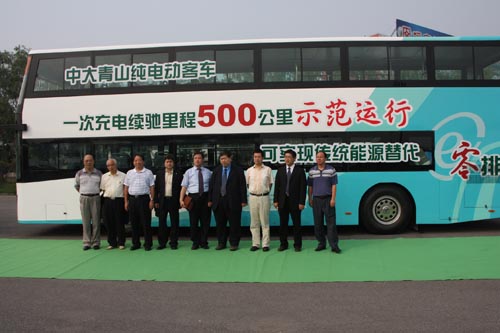 7月16日,中大青山純電動客車500公里示范運行在首都北京圓滿收官。此次示范運行,從北京出發(fā),經(jīng)京沈高速,續(xù)馳到唐山市遷安鎮(zhèn),再返回首都北京,全程約500公里,行駛了約7小時30分。參與全程實況示范運行的單位有:中國道路運輸協(xié)會、中國公路學(xué)會客車分會、民生銀行、渣打銀行、鹽城市人民政府、公證處、北京電視臺、人民網(wǎng)、新浪網(wǎng)、搜狐網(wǎng)、《科技日報》、《每日經(jīng)濟(jì)新聞》、《中國工業(yè)報》、《中國汽車報》、《中國交通報》、中國客車信息網(wǎng)等30多家媒體代表。中大集團(tuán)董事長徐連國、總裁徐連寬、副董事長張玉清,青山能源研究所所長王昌華等一同參加了全程示范運行 。