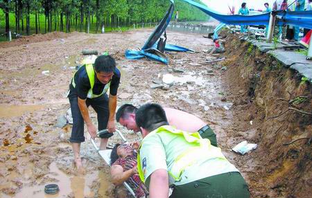 漯河市交警支隊京珠高速大隊一中隊隊長劉富強告訴記者,據(jù)初步調查分析,是客車司機緊急情況下處置不當引起的事故。幸虧高速公路在加寬,雨后松軟的路基緩沖了巨大的沖力,否則后果更加嚴重。