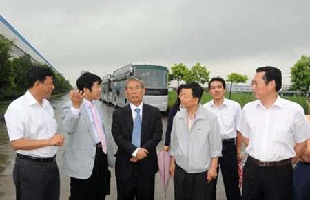 7月28日,韓中經(jīng)濟(jì)貿(mào)易新聞社樸哲進(jìn)社長、隆進(jìn)企業(yè)株式會社洪起杓會長一行考察中大汽車生產(chǎn)基地。鹽城市對外貿(mào)易經(jīng)濟(jì)合作局夏丁華副局長、外事管理處陸繼明處長、中大集團(tuán)常務(wù)副總裁徐子才、中大汽車集團(tuán)總經(jīng)理馬憲等陪同。