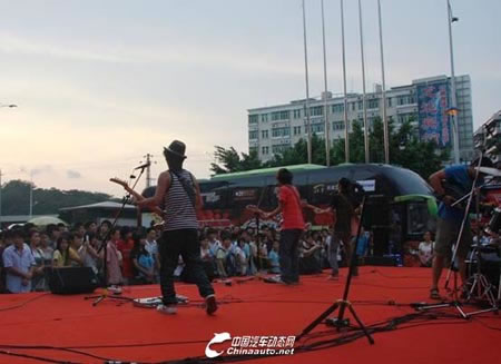雖然深圳的氣溫較高,但在演出中,每一位到場(chǎng)的觀眾都激情自射,臺(tái)上臺(tái)下熱烈互動(dòng),高大威猛的黃海音樂(lè)大巴也吸引了無(wú)數(shù)的眼球,紛紛有人上前合影,詢(xún)問(wèn)客車(chē)的產(chǎn)地、配置等,令人充分感受到了深圳人的熱情,也為黃海的音樂(lè)之旅倍感自豪。