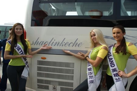 佳麗們的一顰一笑都將魅力、氣質(zhì)、風采表現(xiàn)的淋漓盡致。會場上,俊逸大氣、沉穩(wěn)睿智的少林客車引起了國際佳麗的濃厚的興趣,紛紛上前與其合影,或立于車前,或站在車內(nèi),擺出多種Pose,將靚麗的瞬間定格在眾多閃爍的鏡頭之中。