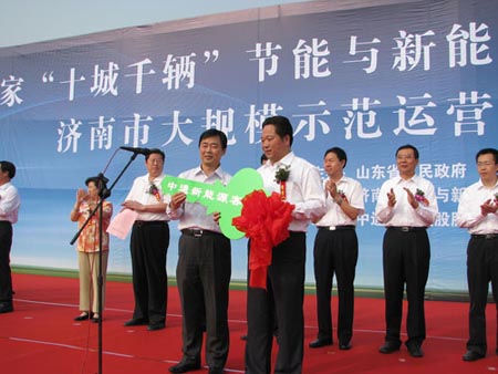 9月18日上午,由山東省人民政府和濟南市人民政府主辦,濟南市節(jié)能與新能源汽車示范推廣試點領(lǐng)導小組、中通客車控股股份有限公司、濟南市公交總公司以及濟南市電動汽車運營公司協(xié)辦的“國家‘十城千輛’節(jié)能與新能源汽車推廣應用濟南市大規(guī)模示范運營啟動儀式”在濟南龍奧大廈西廣場舉行。